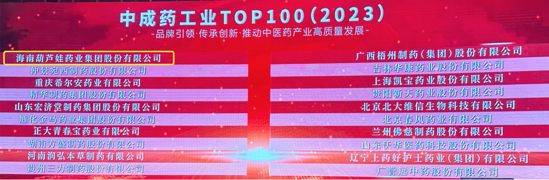 yd12399云顶集团药业集团荣登2023中成药工业TOP100榜单